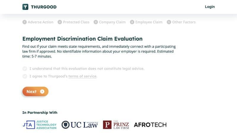 Getting justice after facing discrimination at work shouldn’t depend on whether you can afford a lawyer or understand the legal system. But for too many people, especially low-income workers and people of color, that’s the reality. Thurgood is working to change that by using technology to make it easier – and faster – to get legal support when you need it most.